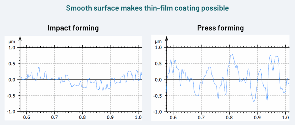 – Lubricant-free press forming process brings clean process environment and product handling